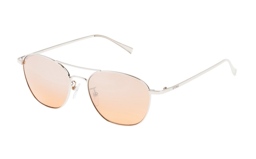 Si tratta di un paio di occhiali dalla forma leggermente arrotondata e lente di colore rosa pesca.
