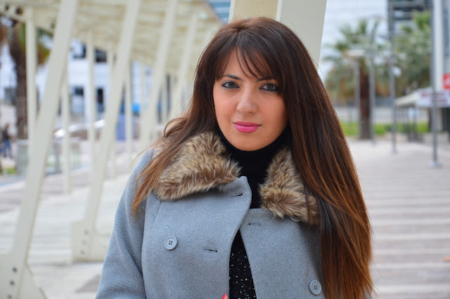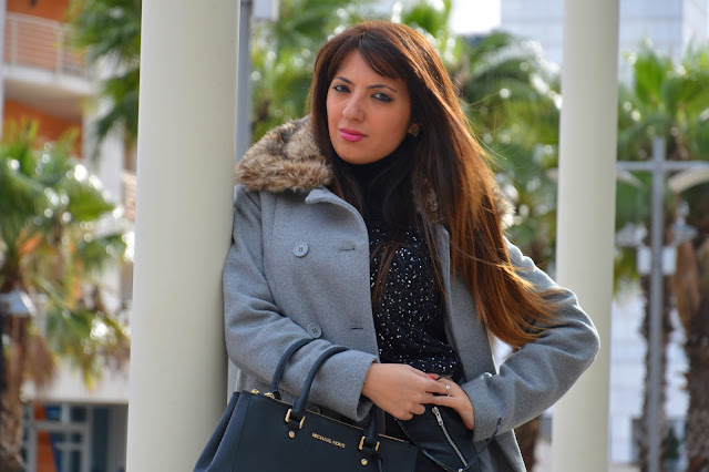 oggi vi mostrerò due look completamente diversi tra di loro nello stile ma accomunati da un unico capo: un cappotto grigio molto delicato con collo in eco fur di Kiabi.