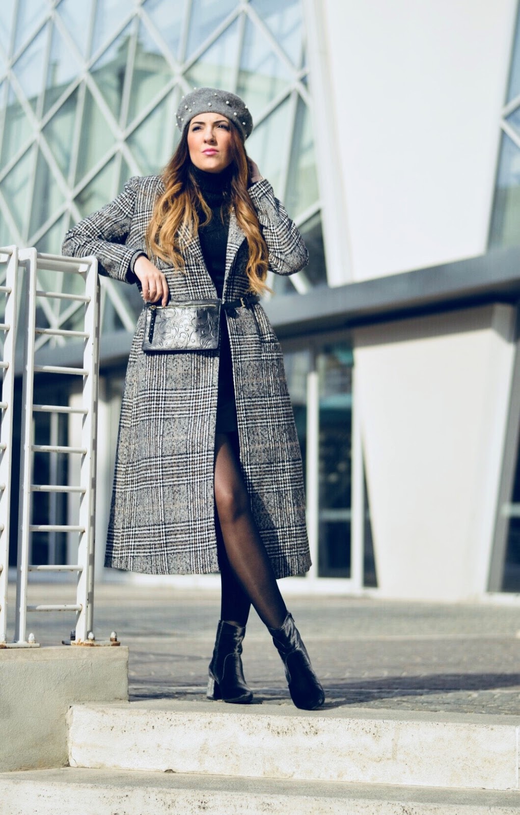 Very elegant outfit with this beautiful coat! Velvet booties are also perfect!