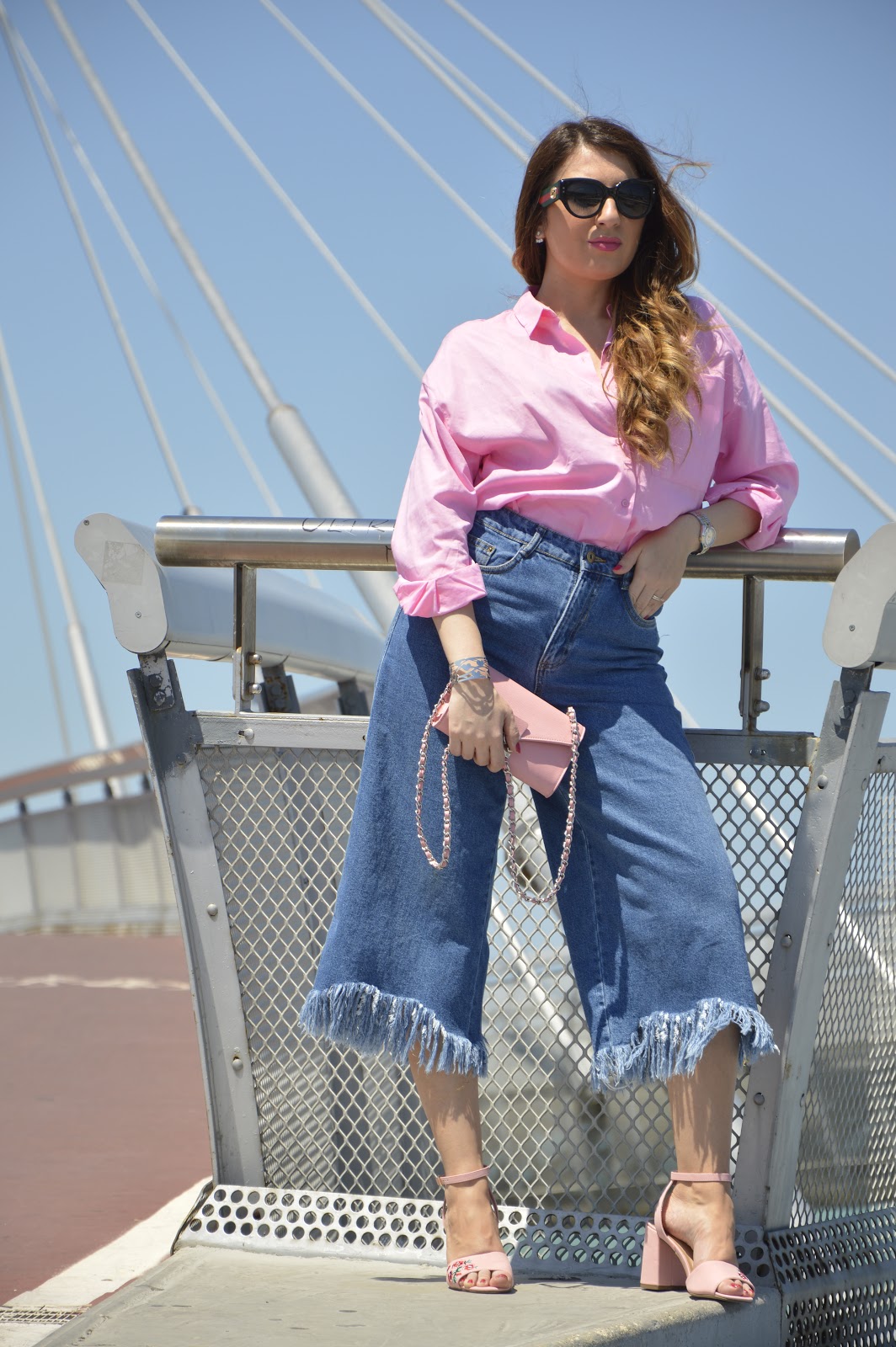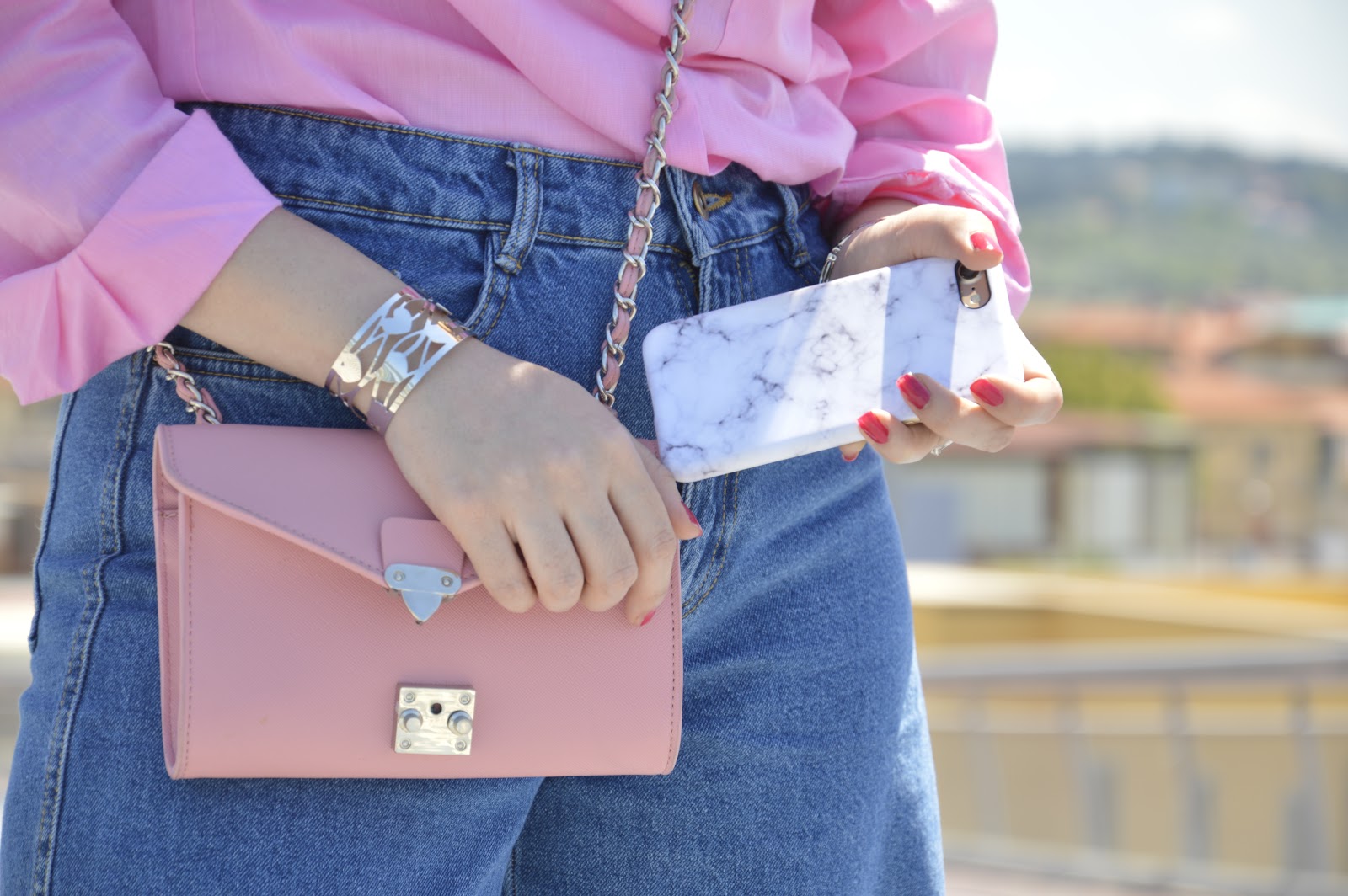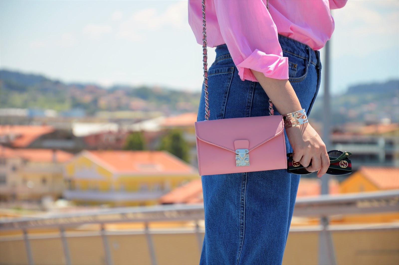 Ho deciso di abbinarli ad una maxi camicia rosa, ad un paio di sandali rosa con ricami floreali di Amiclubwear, una minibag anch’essa rosa di Caleidos…ormai avrete capito che amo letteralmente le borse piccine a tracolla e occhiali da sole Gucci (clicca qui e scopri di più).